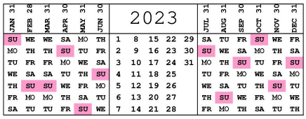 5. At the crossing find the desired Day of Week for the First Date of the Month!