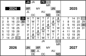 As an example, EVERY STANDARD YEARLY CALENDAR 4x3 or 3x4 can be folded, hiding the two unused horizontal or vertical strips. Then proceed as above.