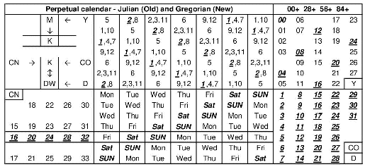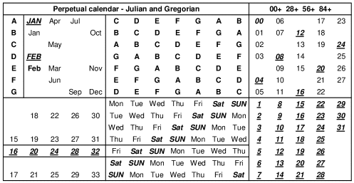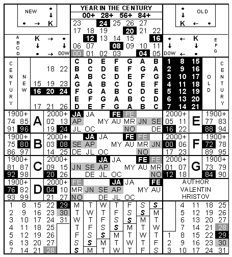 variant I added a second smaller "accordion" with a Perpetual table (including the centuries and a GRAPHICAL instruction) for Finding the Day of Week for the 1st date of the Month!