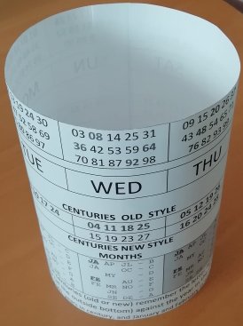A detailed TEXT instruction can be seen above on this page after the (2024) picture of the Cylindrical and Conical variants of Perpetual Month Calendar.
