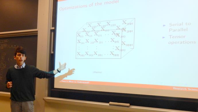 А как бяха нашите герои тази година? – ще попитате. Преди да им да дадем думата, нека да илюстрираме някои важни моменти от академичната сфера. Иван (като човек с интереси и постижения в информатиката) бе в моята група. Проектът му бе формулиран от изследователски екип, в който работи Румен Данговски. Именно той помогна с включването на Иван в тематика, свързана с подобрение и приложение на специфични изкуствени невронни мрежи. Иван подходи изключително сериозно към задачата си, успя да подобри имплементация на един иновативен метод, предложен от ментора му, и реализира интересно приложение в областта на автоматизирано разбиране на текст на естествен език.