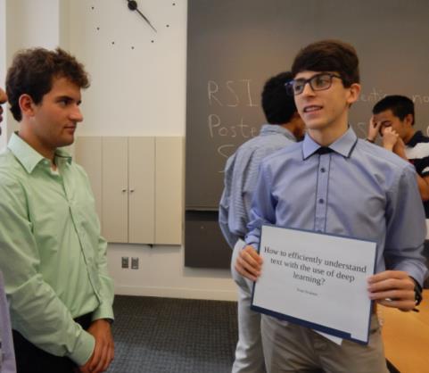 И така, 6 седмици, от които през първата децата се подготвят за сериозните изпитания на истински изследователски процес, 4 седмици, през които влизат в кожата на учени, и последната, адска седмица, през която споделят с огромна публика какво са постигнали – съученици, тютори, ментори, teaching assistans, Nobodies и евентуално (ако са избрани да повторят финалната си презентацията) – с професионално жури, което не само задава трудни въпроси, но може да даде ценни идеи за развитие на проекта… Да припомним, че само 10 от 80-те участници се избират да представят устно проекта си пред цялата публика на RSI, менторите си, официални гости и жури от изявени специалисти в различни области. Досега с такава чест са били удостоени трима български участници в RSI – Антони Рангачев (RSI’04, днес преподавател в Чикагския университет), Калина Петрова (RSI’12, завършила Принстънския университет) и Петър Гайдаров (RSI’14, студент в Кеймбриджския университет) – и тримата се включват активно като ментори в дейностите на УчИМИ през последните години!