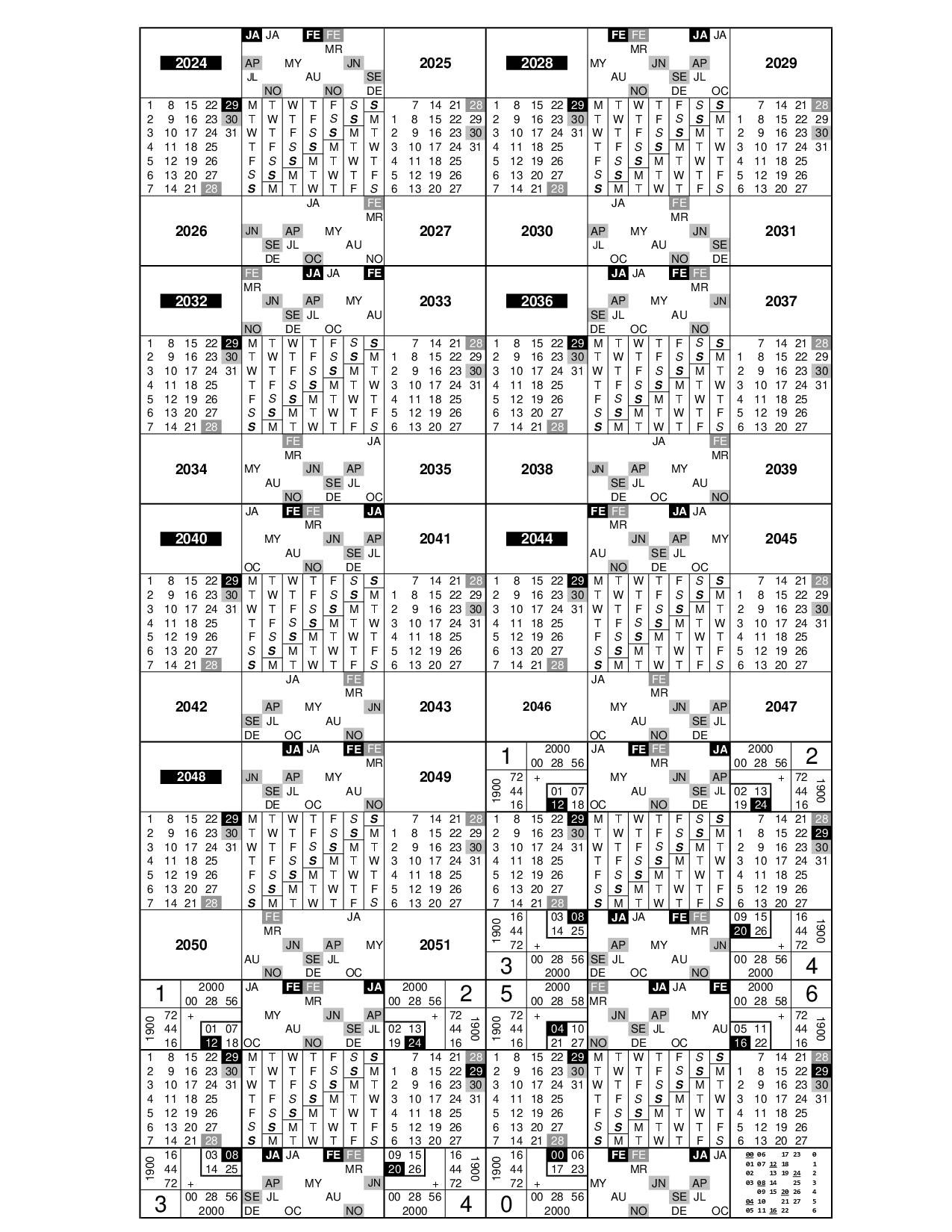 Only printing of two pages for both periods 21 DEC - 21 JUN and 21 JUN - 21 DEC is needed!