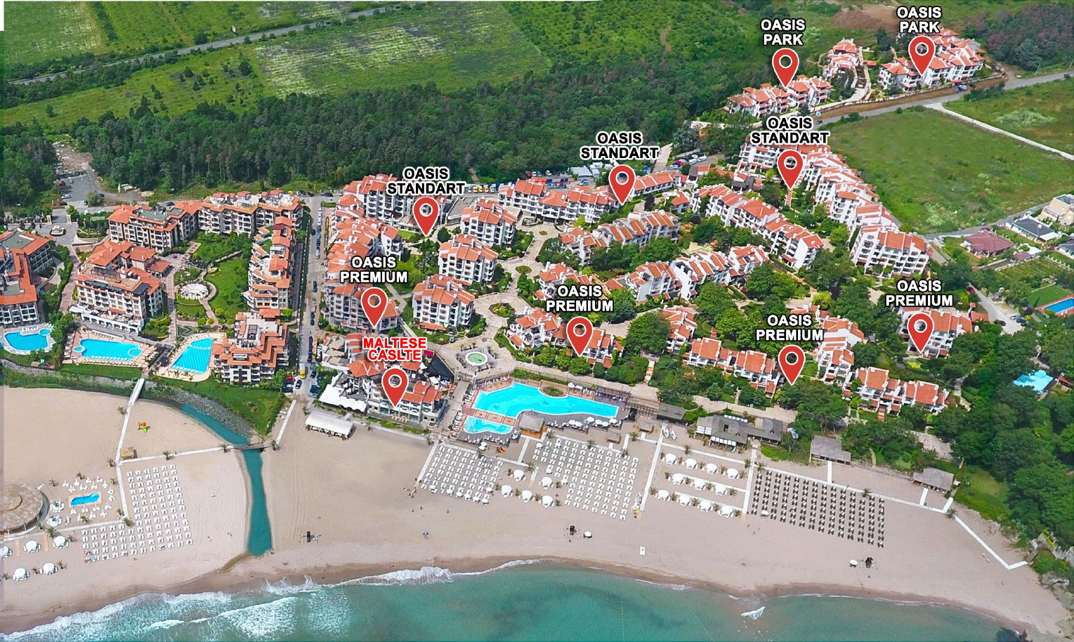 Dear Participants in CTF-2023, The Conference venue is Oasis Resort & Spa, building 3.5.A (see the map) Lozenets resort, Bourgas region. Address: 1 Tsarevski road, Lozenets, 8277, Bulgaria (ул. Царевски път 1, 8277 Лозенец, България). Here is some information about accommodation in the bay of the resort known as Oasis Beach:
