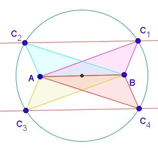 CH = hc , следователно точка C лежи на права, успоредна на AB и на разстояние hc от нея.