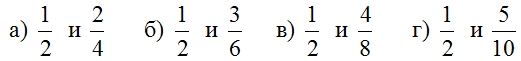 Задача 7. Кои от обикновените дроби са равни?