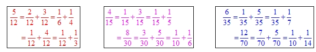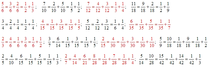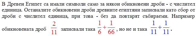 Папирусът на Райнд, най-старият известен математически документ, съдържа таблица на обикновените дроби с числител 2 и знаменател – нечетните числа от 5 до 99, представени като суми като разглежданите.