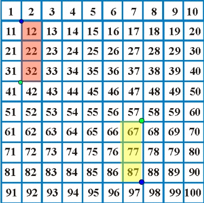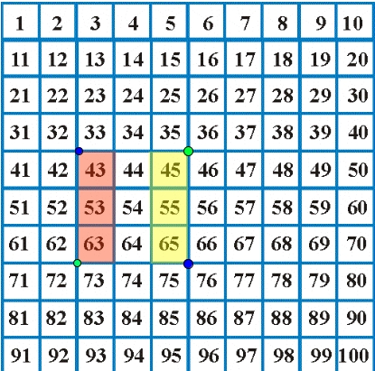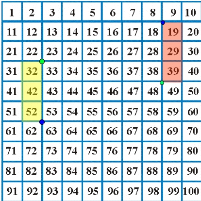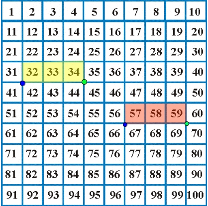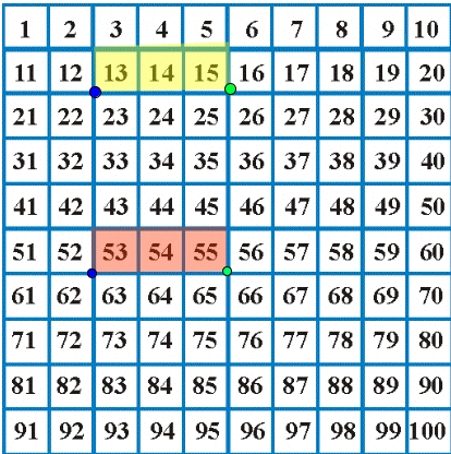 Задача 1.4. Запишете три числа, които не могат да бъдат сбор, покрит от „правоъгълно” тримино върху разглежданата числова таблица.