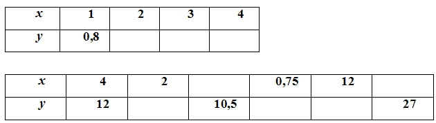 Задача 7. Ако у зависи правопропорционално от х, намерете коефициента к и попълнете таблицата: