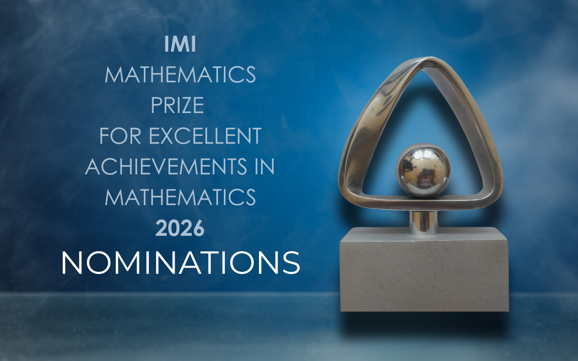 The Institute of Mathematics and Informatics (IMI) at the Bulgarian Academy of Sciences opens a call for nominations for the IMI Mathematics Prize for the year 2026 for excellent achievements in Mathematics. The candidates must be Bulgarian citizens and must not have completed 40 years of age before January 1st, 2026.