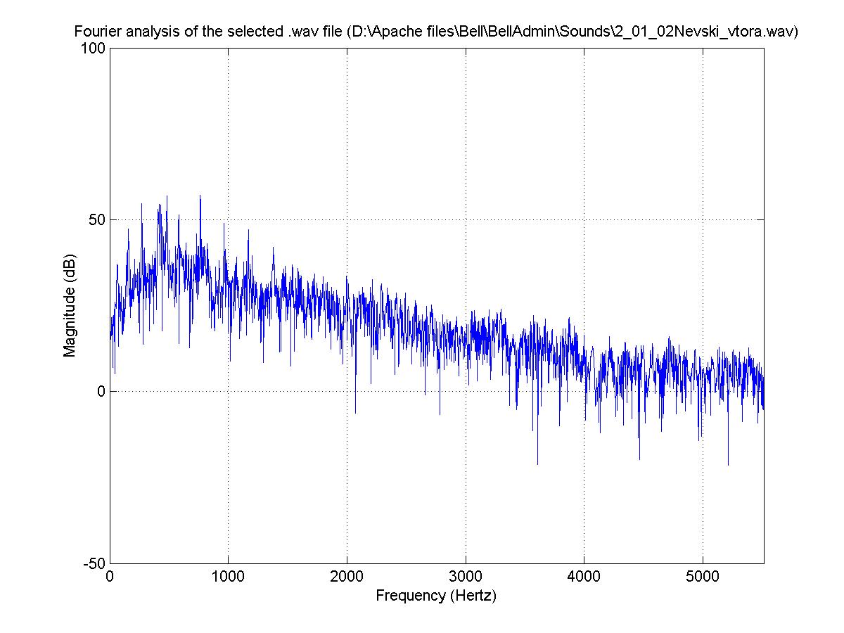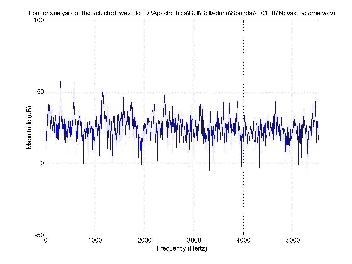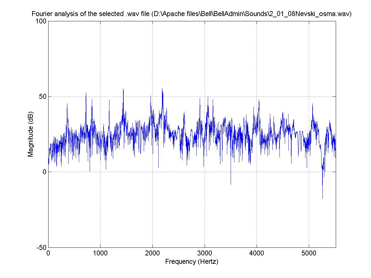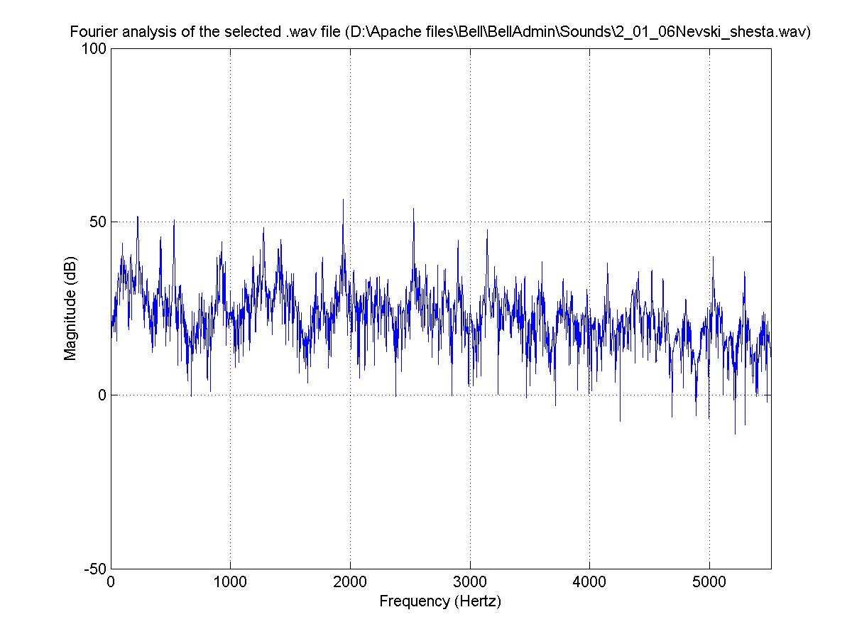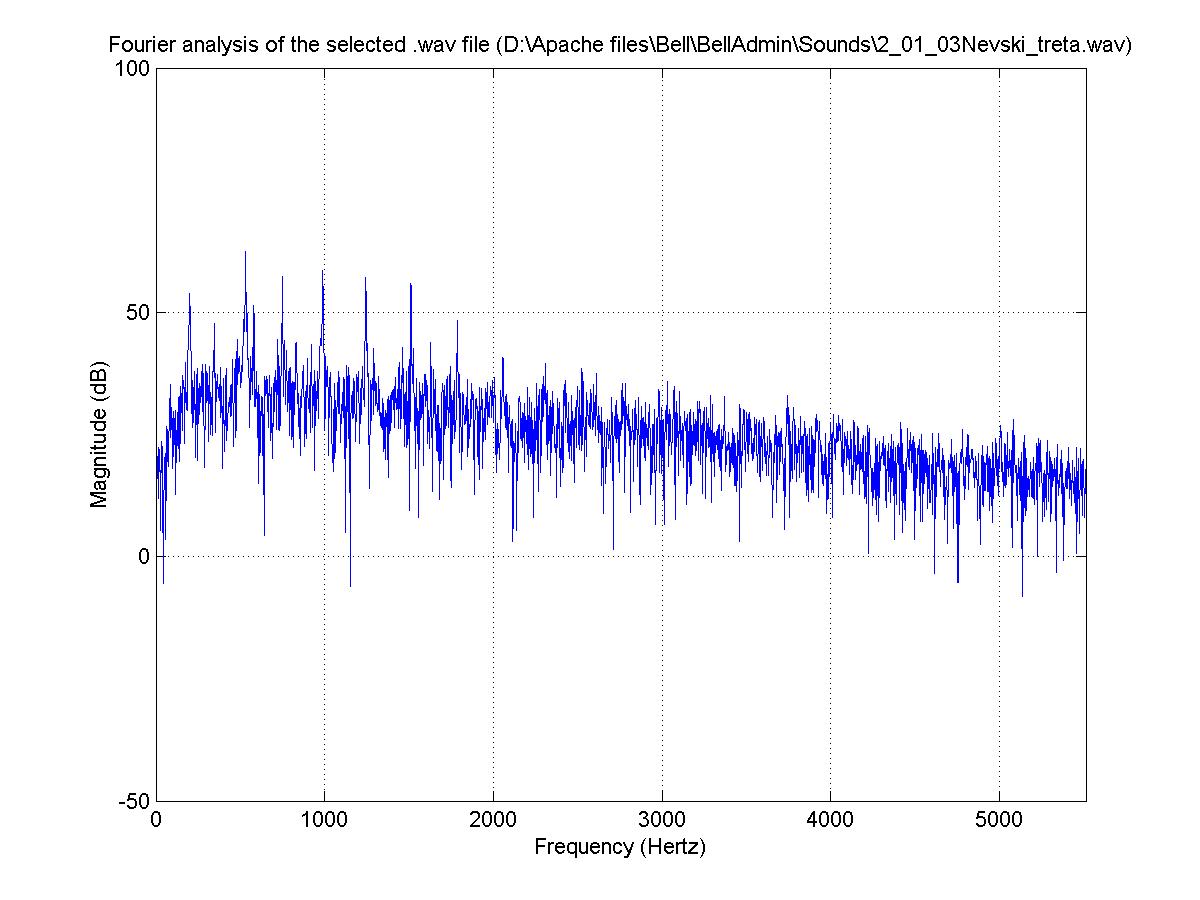 Материал - сплав олово, сребро и мед. С форма на пресечен конус. Късо тяло с малка плавна извивка. На раменния пояс – ивица от преплетени растителни орнаменти. Едър едноредов надпис с черковнославянски букви: ХРАМЪ-ПАМЕТНИКЪ СВ. АЛЕКСАНДРЪ НЕВСКИ ВЪ СОФИЯ. В надписа е вградена релефна розета. На средния пояс – чисто поле. На долния пояс – едноредов надпис с черковнославянски букви: ИЗЛ¼НА НА 26 МАЙ 1911 ГОДИНА В Л¼ЯРНИЦАТА НА П. Н. ФИНЛЯНДСКИ (три монетовидни релефа с изображение на двуглав орел) ВЪ МОСКВА ТЕЖИНА 553 КИЛОГРАМА. Средна по големина камбана. Камбаните не следват осемтоналната музикална система, а природна, хармонична система, състояща се от тонове и полутонове. Това се дължи на пропорционалността в теглото им, всяка камбана е на половина по-лека от предишната. Езиците на средните камбани са вързани с метални шнурове, по които звънарят удря с отсечени движения.