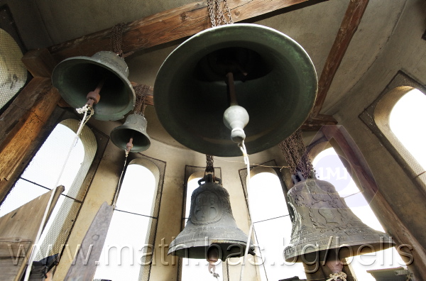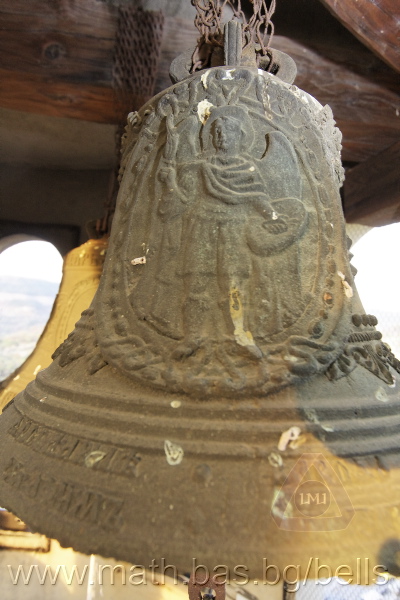 Бронзова – патинирана. С форма на пресечен конус. Малко тяло с голяма извивка в долния край. На раменния пояс е разположена украса от растителни орнаменти – фестони, обърнати нагоре и под тях въжеста лента и венец от едри точки. В средния пояс – два големи срещуположни медальона, обхващащи целия пояс. В единия медальон е изобразен Архангел Михаил. Другото изображение е неясно. Между медальоните са разположени единични осемлистни розети. На прехода към долния пояс – украсата от раменния пояс с по-едри и обърнати надолу фестони. В долния пояс е разположен двуредов релефен надпис с черковнославянски букви: ЛИТЪ ВЪ ЗАВОД¼ ПОРФИРИ¾ ОЛОВ¾ННШИЙКОВА ВЪ ¾РОСЛАВЛ¼ В¼СЪ ПУД (малко изпъкнало правоъгалниче – няма нанесена цифра) ФУН (малко изпъкнало правоъгалниче – няма нанесена цифра). Най-долу – едноредов нечетлив черковнославянски надпис, с изхабени и повредени букви: ... СЛАВН¼ИШУЮ БЕЗЪ...РАВНЕНІ¾ ... ВЪЗВЕЛИЧИТИТ¾ БОГОРОДИЦ¼ .... Езикът е чугунен – потъмнял. Дълъг, завършващ с цилиндрична топка с отвор, в който е завързано въжето. Окачен е директно – като кука. Ушите са метални, Т-образни и окачени близо до гредите чрез вериги.