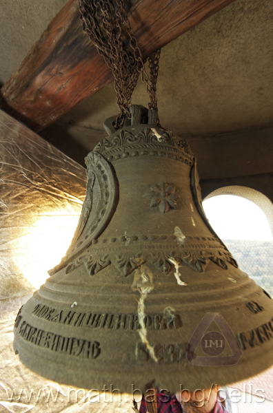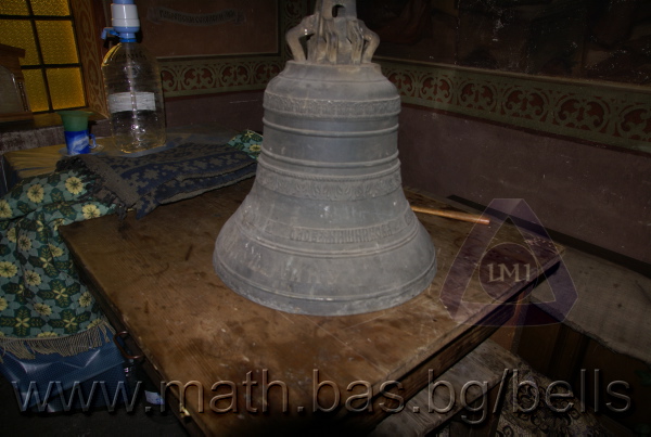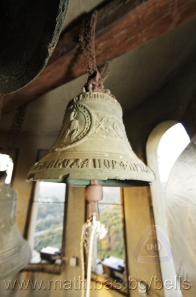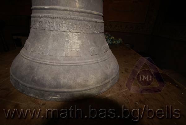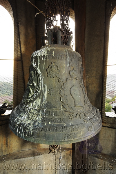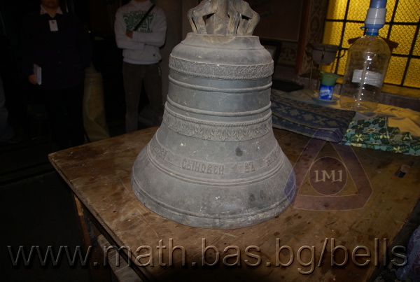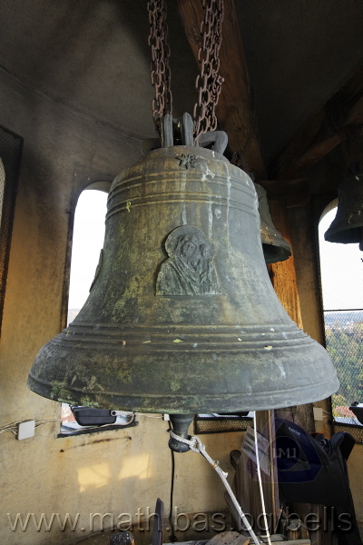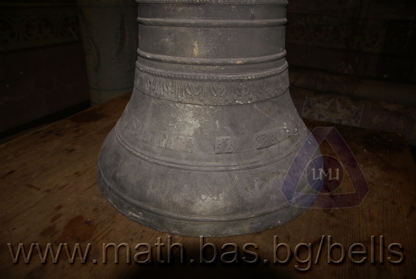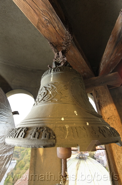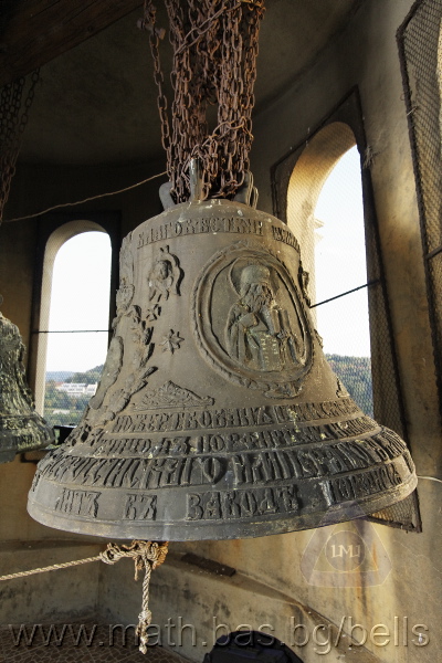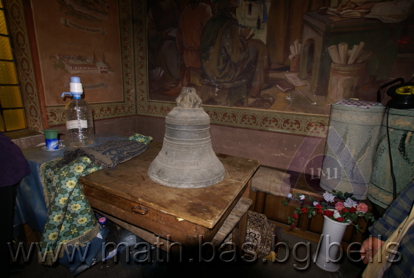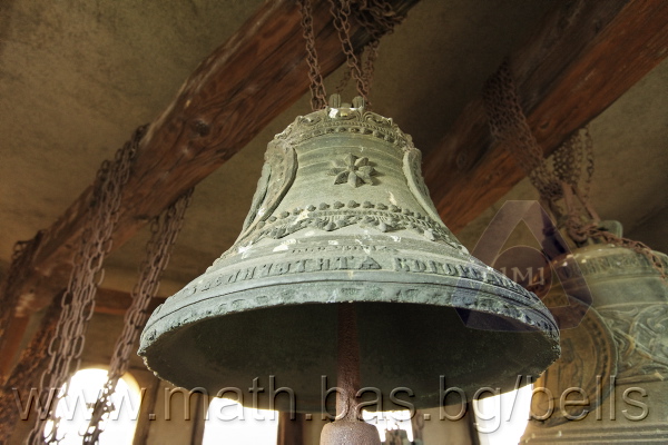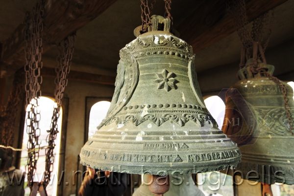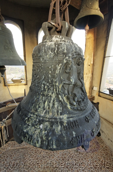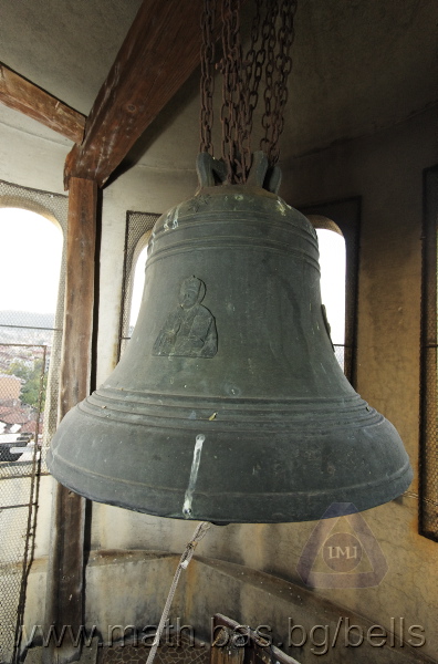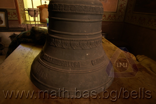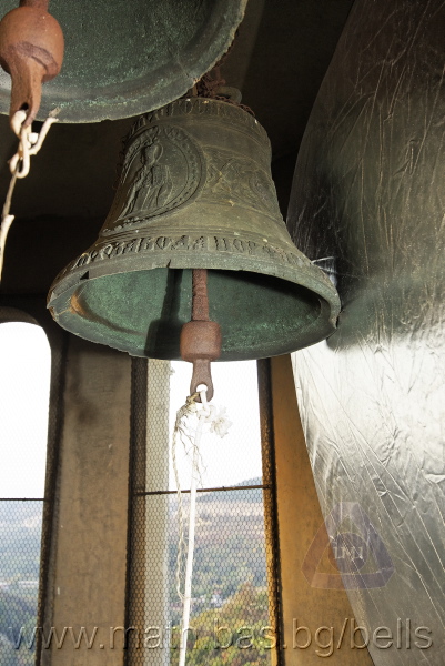 Бронзова – патинирана. С форма на пресечен конус. Малко тяло с голяма извивка в долния край. На раменния пояс е разположен едър релефен едноредов черковнославянски надпис – нечетлив: ...ВЕСЕЛИТС¾ ЦАР¼ (малък равнораменен кръст) ГОСПОДИ ТВОЕЮ ВОЗВЕС... В средния пояс – широка ивица от едри релефни преплетени растителни орнаменти, ограничени от две успоредни изпъкнали линии. Ивицата се прекъсва от два срещуположни големи медальона с изображения на Св. Николай и Мъченик за вярата (носещ кръст). В долния пояс – на извивката са разположени три успоредни изпъкнали линии. А най-долу е разположен релефен едър едноредов надпис с черковнославянски букви: (малък равнораменен кръст) ЗАВОДА ПОРФИРИІ¾ ИВАНОВИЧА ОЛОВ¾ННШИЙКОВА ¾РОСЛАВЛ¼ В¼СУ ПУД (малко изпъкнало правоъгалниче – няма нанесена цифра) ФУН (малко изпъкнало правоъгалниче – няма нанесена цифра). Буквите на всички надписи са леко фестонирани. Езикът е метален – дълъг, завършващ с цилиндрична топка с отвор, в което е завързано въжето. Окачен е без междинна халка. Ушите са метални и хванати за гредите чрез железни вериги.