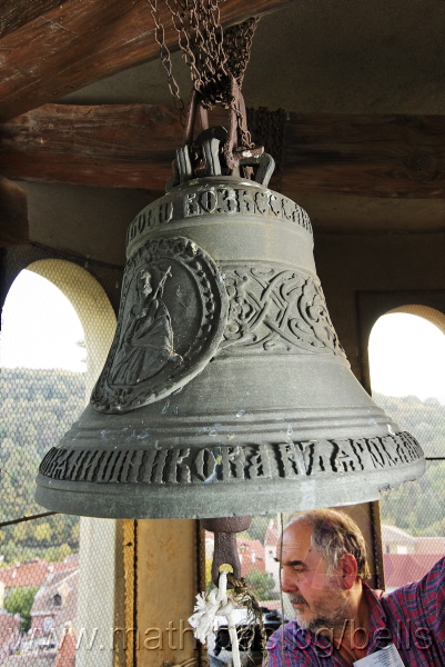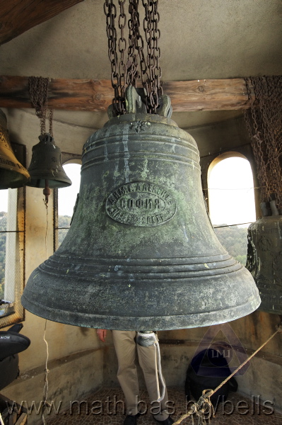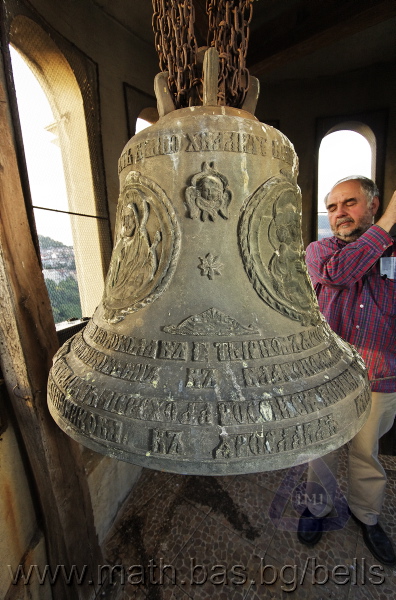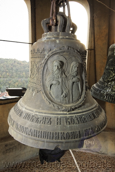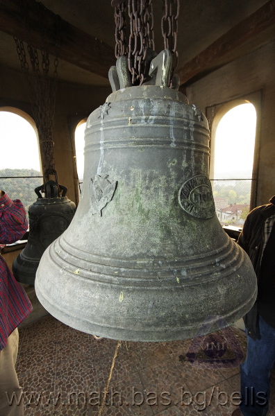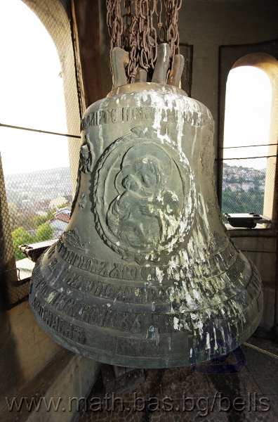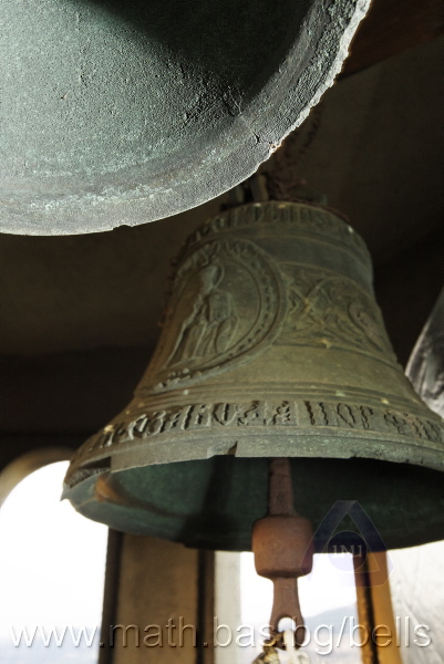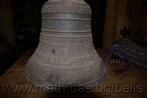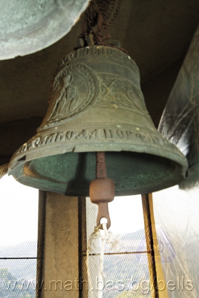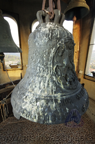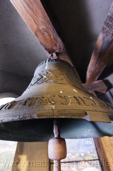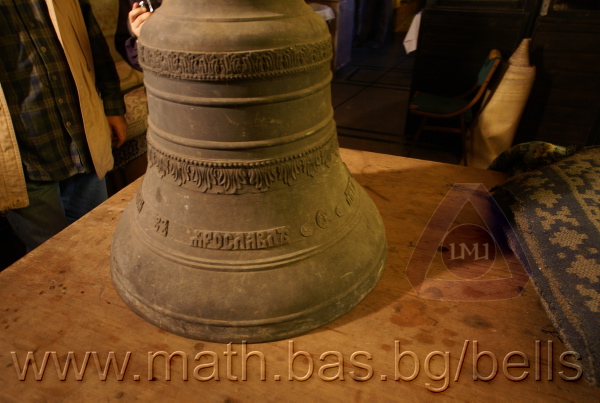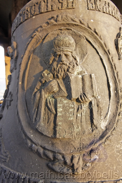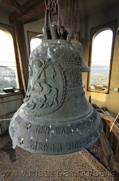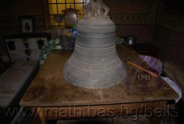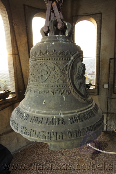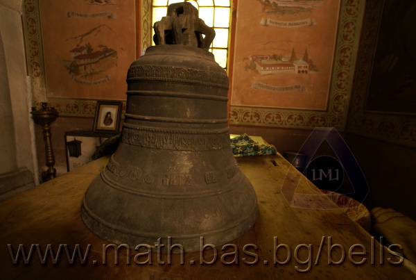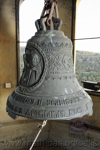 Бронзова – патинирана. С форма на пресечен конус. Малко тяло с голяма извивка в долния край. На раменния пояс е разположен едър релефен едноредов черковнославянски надпис – нечетлив: ...ВЕСЕЛИТС¾ ЦАР¼ (малък равнораменен кръст) ГОСПОДИ ТВОЕЮ ВОЗВЕС... В средния пояс – широка ивица от едри релефни преплетени растителни орнаменти, ограничени от две успоредни изпъкнали линии. Ивицата се прекъсва от два срещуположни големи медальона с изображения на Св. Николай и Мъченик за вярата (носещ кръст). В долния пояс – на извивката са разположени три успоредни изпъкнали линии. А най-долу е разположен релефен едър едноредов надпис с черковнославянски букви: (малък равнораменен кръст) ЗАВОДА ПОРФИРИІ¾ ИВАНОВИЧА ОЛОВ¾ННШИЙКОВА ¾РОСЛАВЛ¼ В¼СУ ПУД (малко изпъкнало правоъгалниче – няма нанесена цифра) ФУН (малко изпъкнало правоъгалниче – няма нанесена цифра). Буквите на всички надписи са леко фестонирани. Езикът е метален – дълъг, завършващ с цилиндрична топка с отвор, в което е завързано въжето. Окачен е без междинна халка. Ушите са метални и хванати за гредите чрез железни вериги.