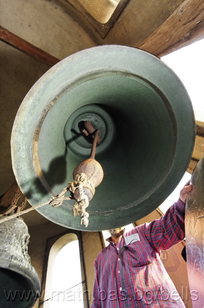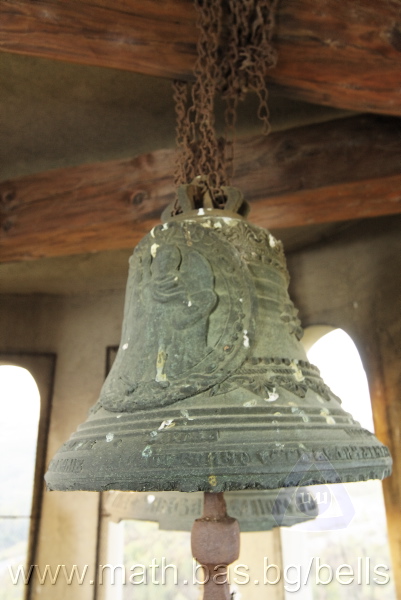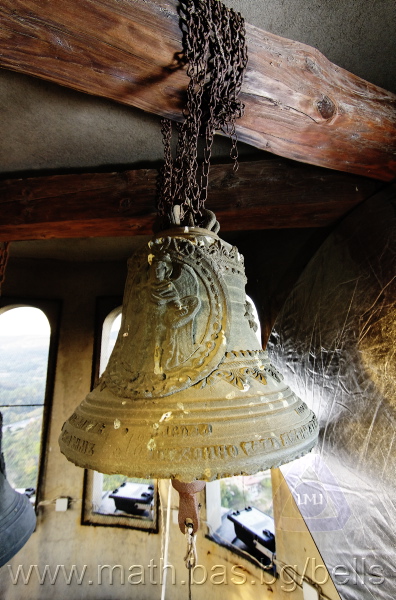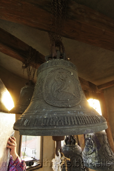 Бронзова – патинирана. С форма на пресечен конус. Малко тяло със средноголяма извивка в долния край – класическа кабана. На раменния пояс – украса от единично разположени шестлистни розети. Под тях – две двойки успоредни изпъкнали ивици. В средния пояс е поставен елипсовиден щемпел с надпис: ДИМ. Г. АЛЕКСИЕВ, София КАМБАНОЛЕЯРИ (с разделители две петолъчни звезди). Разположени са също релефи (без медальони) на серафим, Св. Николай и Богородица с младенеца. В долния пояс има четири успоредни изпъкнали ивици. Езикът е чугунен – потъмнял. Дълъг, завършващ с голяма овална топка със стеснение, в което е завързано въжето. Окачен е директно – като кука. Ушите са метални, Т-образни и окачени за гредите чрез вериги.