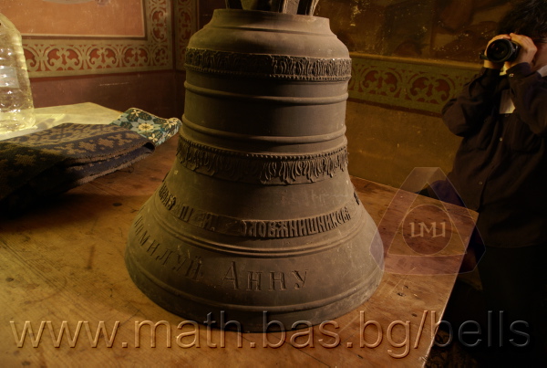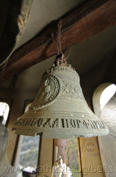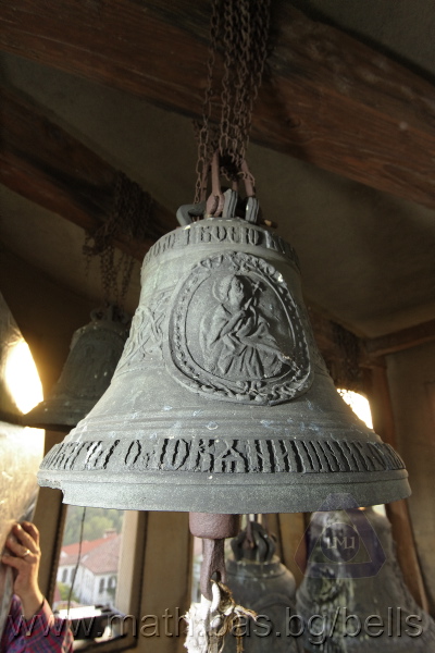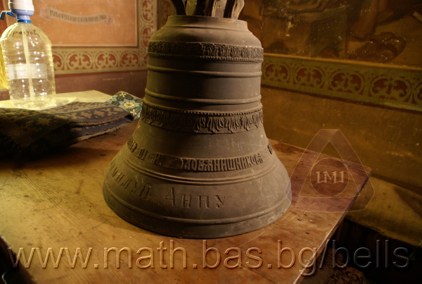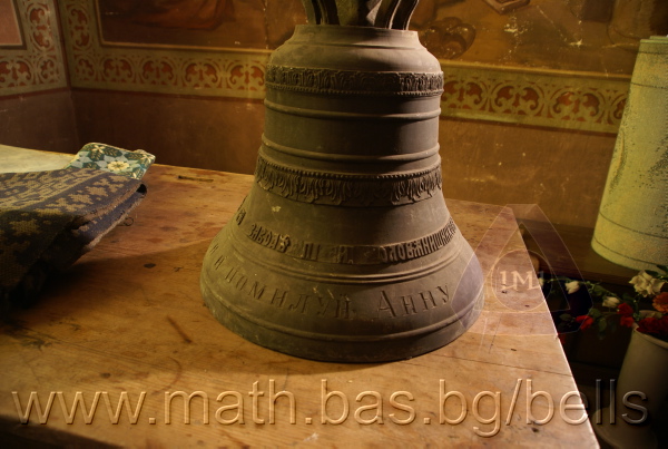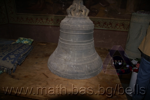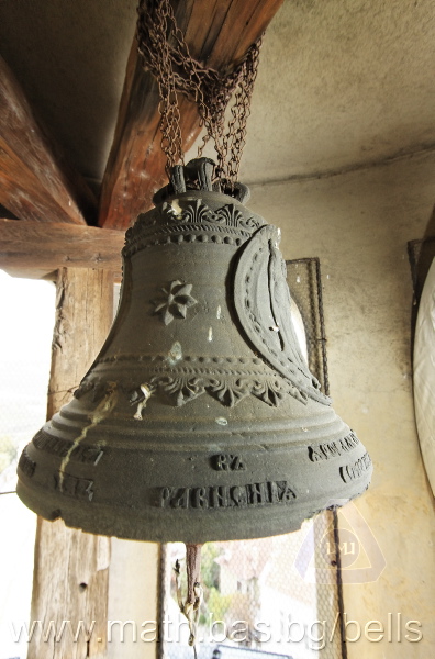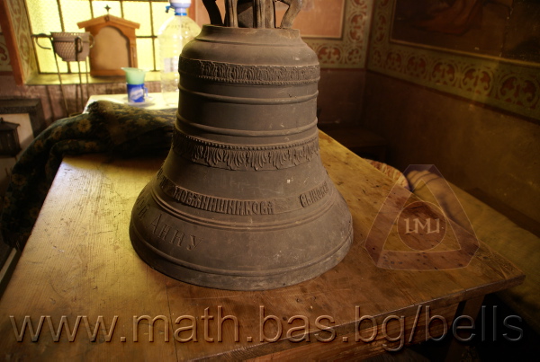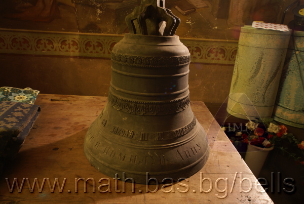 Бронзова – патинирана. С форма на пресечен конус. Дълго тяло с малка извивка в долния край. Пукната. На раменния пояс – широко празно поле, под което е разположена украса от релефни растителни орнаменти - фестони, обърнати нагоре. В средния пояс украсата е като раменната - от по-едри и обърнати надолу фестони, долепени до орнамент от ритмично разположени между две изпъкнали линии едри точки. В долния пояс – на извивката релефен надпис с черковнославянски букви: ЛИТЪ ВЪ ЗАВОД¼ П. И. ОЛОВ¾ННШИЙКОВА С¼ІНОВЕЙ ВЪ ¾РОСЛАВЛ¼ . Като разделител в надписа са поставени релефи – гръбна страна на три монети. Двете са дребни и с неясни изображения. Средната е по-едра и има изображение на двуглав орел. Под надписа ра разположени две успоредни изпъкнали линии. Най-долу в празно поле допълнително е вдълбан едър едноредов надпис на новобългарски език: СПАСИ И ПОМИЛУЙ АННУ. Езикът липсва. Ушите са метални, Т-образни. Камбаната не е окачена.