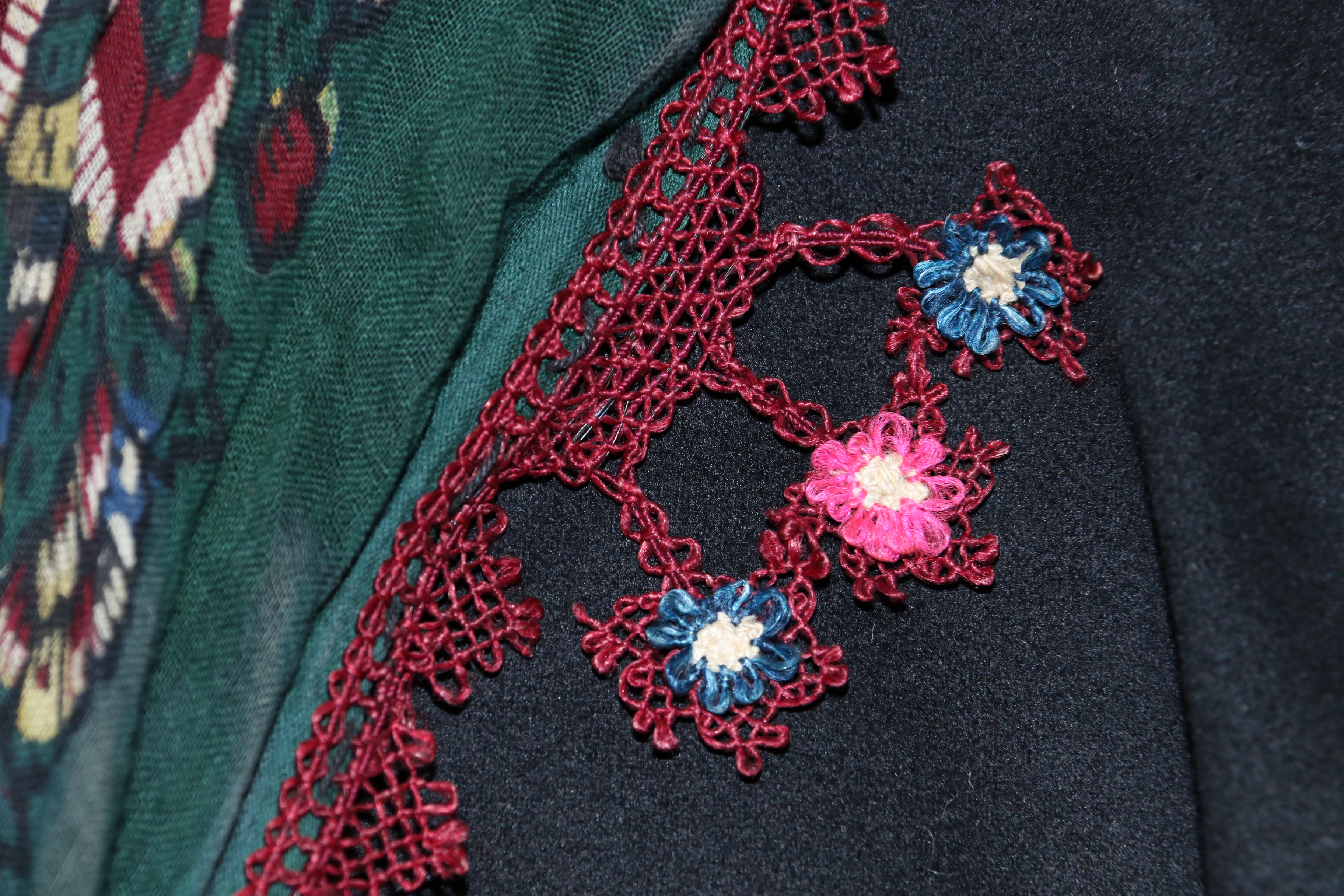 Украсена със зарафлъци (кенета, шита дантела), които показват сръчността и усета на българката към красивото и детайла. Разликата с другите дантели е в използването на конски косъм за основа и наплитане около него със специфични възли. Зарафлъците се изработват с разноцветни памучни и копринени конци. Те са украса и за ризи, кърпи, месали.