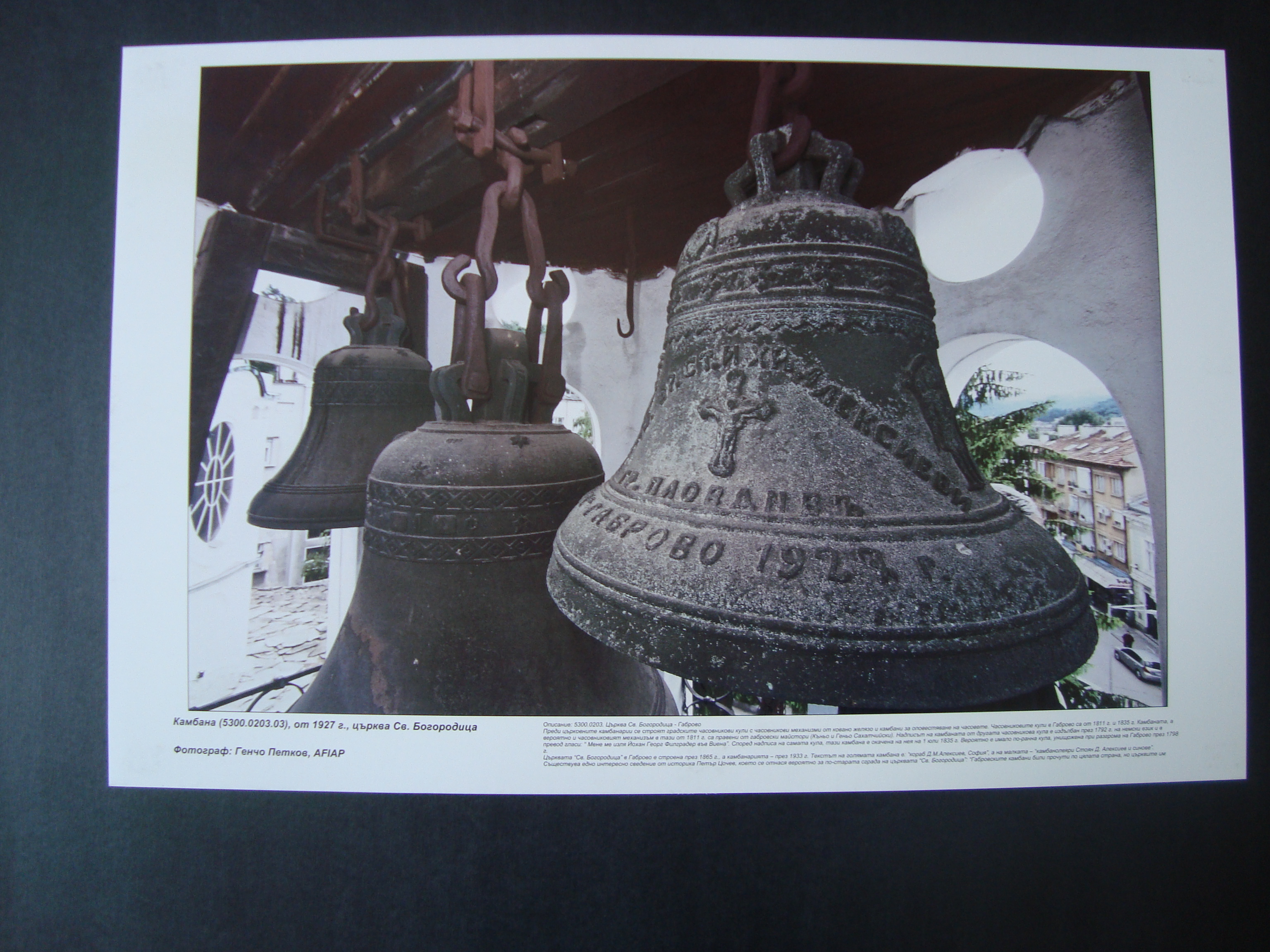 5300.0203. Църква Св. Богородица - Габрово Преди църковните камбанарии се строят градските часовникови кули с часовникови механизми от ковано желязо и камбани за оповестяване на часовете. Часовниковите кули в Габрово са от 1811 г. и 1835 г. Камбаната, а вероятно и часовниковият механизъм в тази от 1811 г. са правени от габровски майстори (Къньо и Геньо Сахатчийски). Надписът на камбаната от другата часовникова кула е издълбан през 1792 г. на немски език и в превод гласи: “ Мене ме изля Йохан Георг Филградер във Виена”. Според надписа на самата кула, тази камбана е окачена на нея на 1 юли 1835 г. Вероятно е имало по-ранна кула, унищожена при разгрома на Габрово през 1798 г. Църквата “Св. Богородица” в Габрово е строена през 1865 г., а камбанарията – през 1933 г. Текстът на голямата камбана е: “кораб Д.М.Алексиев, София”, а на малката – “камбанолеяри Стоян Д. Алексиев и синове”. Съществува едно интересно сведение от историка Петър Цочев, което се отнася вероятно за по-старата сграда на църквата “Св. Богородица”: “Габровските камбани били прочути по цялата страна, но църквите им биели с дървени клепала. Габровци се опитали да поставят камбана, но не им разрешили. Занесли я в Соколския манастир. В деня на възкачването на престола на султан Азис (юни, 1862 г.) на двама габровци и м хрумва да използват празника за покачване на камбаната. Донасят я от манастира и на третия ден я окачват на черковната камбанария.. На сутринта с клепалата забива и камбаната. Това стряска турската управа и приятно изненадва габровци. Когато съответните турски служители идват да разберат какво става ги уверяват, че гражданството смята със звъна на новата камбана да засвидетелства най-тържествено своите верноподанически чуства. към новия султан. И така я оставят да бъде бита, като се примиряват със свършения факт.” Вестта за тази находчивост обикаля цяло Българско. Г.С.Раковски дори помества дописка за знаменателното събитие в “Дунавски лебед”. |