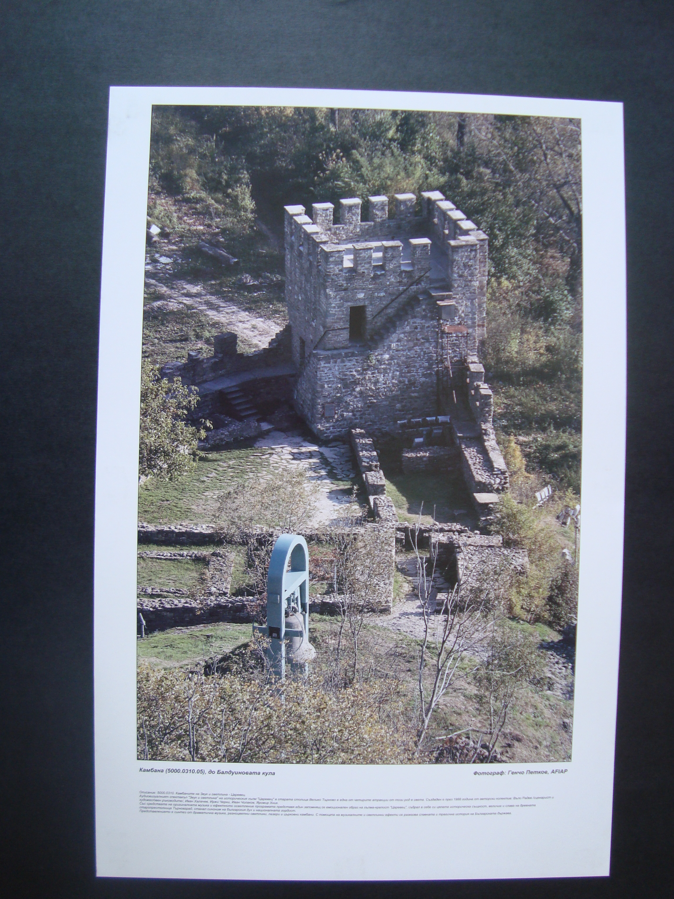 5000.0310. Камбаните на Звук и светлина - Царевец. Аудиовизуалният спектакъл "Звук и светлина" на историческия хълм "Царевец" в старата столица Велико Търново е една от четирите атракции от този род в света. Създаден е през 1988 година от авторски колектив: Въло Радев /сценарист и художествен ръководите/, Иван Халачев, Иржи Черни, Иван Чолаков, Яромир Хник. Със средствата на оригиналната музика и ефектното осветление програмата представя един запомнящ се емоционален образ на хълма-крепост "Царевец", събрал в себе си цялата историческа същност, величие и слава на древната старопрестолница Търновград, станал синоним на българския дух и националната гордост. Представлението е синтез от драматична музика, разноцветни светлини, лазери и църковни камбани. С помощта на музикалните и светлинни ефекти се разказва славната и трагична история на Българската държава. |