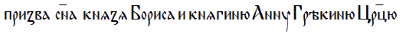 «призва сына князя Бориса и княгиню Анну грекиню Царицю» (Временник ОИДР, с. 34; цит. по ДИМП с. 53)