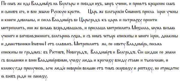 Чуть дальше он снова уделяет внимание феномену присутствия болгарского влияния на раннее русское христианство:
